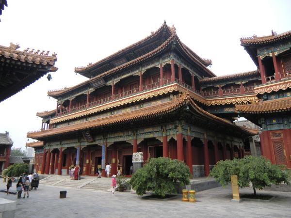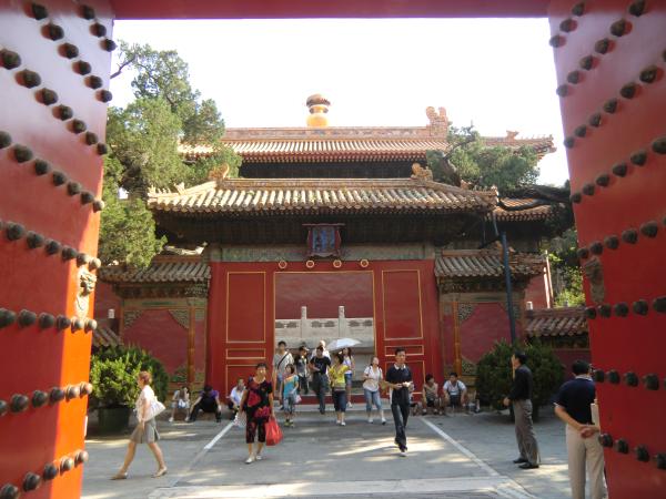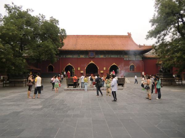 Was mir allerdings fast besser gefallen hat, weil nicht so überlaufen, war der Lama Tempel, ein alter Kaiserpalast, der zu einem buddhistischen Tempel umfunktioniert wurde. Hier haben überall Chinesen gestanden, Räucherstäbe angezündet und zu den verschiedenen Göttern gebetet. Am eindrucksvollsten war die große Halle am Ende des Tempels, in der eine aus einem einzigen Stück Holz geschnitzte, 18 m hohe Buddha-Statue steht. Leider war in den Gebäuden das Fotografieren verboten, damit man die Leute nicht bei der Ausübung ihrer Religion stört, deshalb kann ich leider nur Bilder von Außen anbieten.