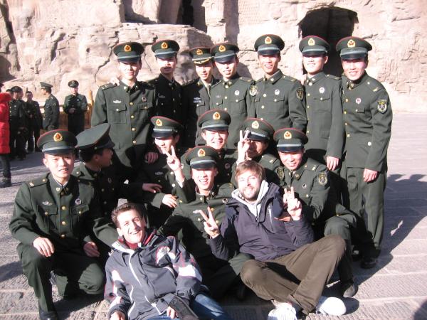 Lustigerweise kam eine große Gruppe chinesisches Militär (anscheinend auf Ausflug) vorbei und da wir die einzigen westlichen Touristen waren, waren wir für sie anscheinend interessanter als die gewaltigen Buddhastatuen im Hintergrund und eine lange Fotosession nahm ihren Anfang. Nach dem gefühlt hundertsten Bild wird sowas dann doch auch anstregend. Allerdings sind ein paar wirklich lustige Bilder entstanden: