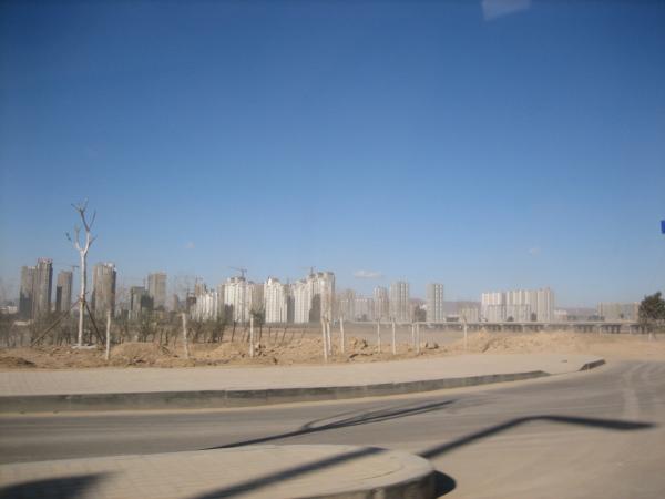 Ein anderes Projekt ist zum Beispiel, dass bei den Yungang-Grotten ein Wald angepflanzt wurde, was an sich nichts Aussergewöhnliches ist, außer man weiß, dass Shanxi eine der trockensten Regionen Chinas ist in der sonst kaum Bäume wachsen. Die Landschaft wirkt teilweise wie direkt aus einem post-apokalyptischen Film kopiert. Jeder dieser Bäume wird ironischerweise von drei Holzbalken gestützt, für die sicher mindestens ein anderer Baum gefällt wurde...