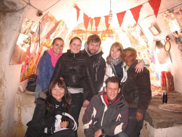 Das Interessanteste aber dürfte sein, dass in Shanxi über 3 Millionen Menschen in Höhlen leben. Wenn man sich die kleinen baufälligen Hütten hier ansieht, kann man sich schon vorstellen, dass solche Höhlen mit Sicherheit besser isoliert sind. Ein weiterer Vorteil ist die Tatsache, dass man kaum Baumaterialien braucht (wie schon gesagt, Holz gibts hier nicht allzu viel). Da wir uns das aber trotzdem noch nicht richtig vorstellen konnten (was ist mit Strom und fließend Wasser?), haben wir unseren Fahrer gefragt, ob das alles so stimmt. Er hat uns prompt zum "Haus" eines alten Mannes gefahren, der sein ganzes Leben in seiner Höhle gelebt hat.