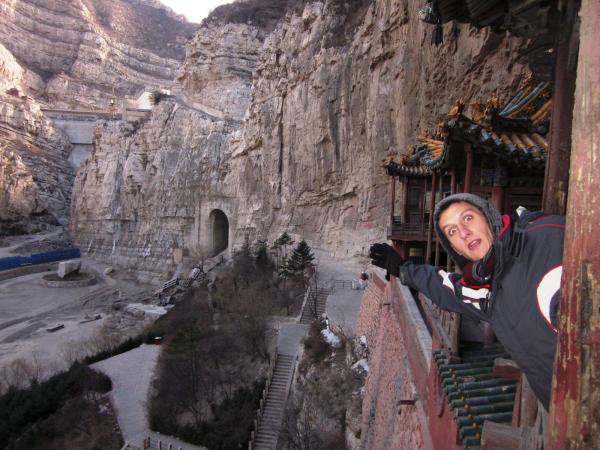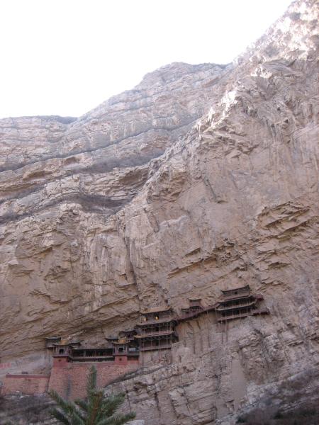 Aber zurück zum Wesentlichen: Unser heutiger Ausflug führte uns zu einem "hängenden Kloster" in einem nahen Gebirgszug. Dem ging eine ca. einstündige Autofahrt voraus, die uns mehr als einmal ungeschminkt vor Augen führte, dass ein Teil der chinesischen Bevölkerung immer noch in ärmlichen Verhältnissen lebt. Die karge Landschaft trug ihr Übriges dazu bei.