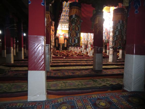 Am zweiten Sightseeing-Tag in Lhasa ging es zuerst zum Drepung-Kloster. Dieses Kloster beherbergte früher 7000 Mönche, wurde aber, wie viele Klöster und Tempel überall in China während der Kulturrevolution (1966-1976) größtenteils zerstört und danach wieder aufgebaut. Heute leben weit weniger Mönche dort. Ich konnte hier gegen einen kleinen Obolus im Innern fotografieren. Im Wesentlichen sahen alle anderen Klöster und Tempel, in denen wir waren, von innen relativ ähnlich aus.